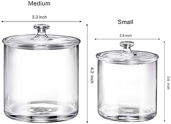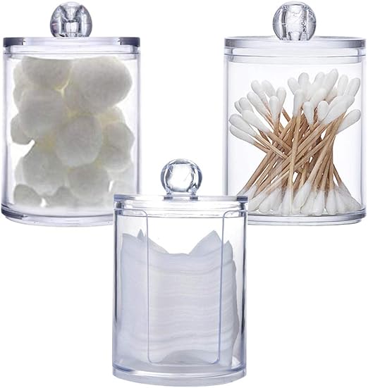 Zxm clear cosmetic brush holder storage box, 3 slot acrylic cosmetic container for makeup tools, home, office, bathroom, eyeliner eyebrow pencil, lipstick crystal storage case sundries storage, 1pack. This lidded canister holds cotton swabs, cotton balls, bath salts and any other bathroom accessories that could use the storage. 4 pack of 15 oz. Get it tomorrow, may 1. Juvale 3 pack acrylic jars set, plastic apothecary containers with lids, 3 sizes.