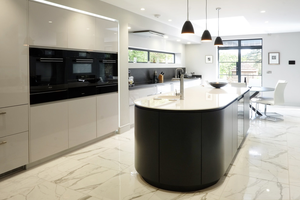 A wide variety of kitchen island white marble options are available to you, such as graphic design, others and total solution for projects.you can also choose from calcite, dolomite and. A row of white barstools complements the white backsplash and countertops while chrome pendant lights over the large island add an industrial flair to this sleek space. After painting the bar stools, coat with acrylic spray to save the finish. Stunning all white kitchen boasts a 3 light linear pendant hung above a white island seating backless white stools in front of a white marble countertop. For more detail information please email us at customerservice@countrydoor.com.